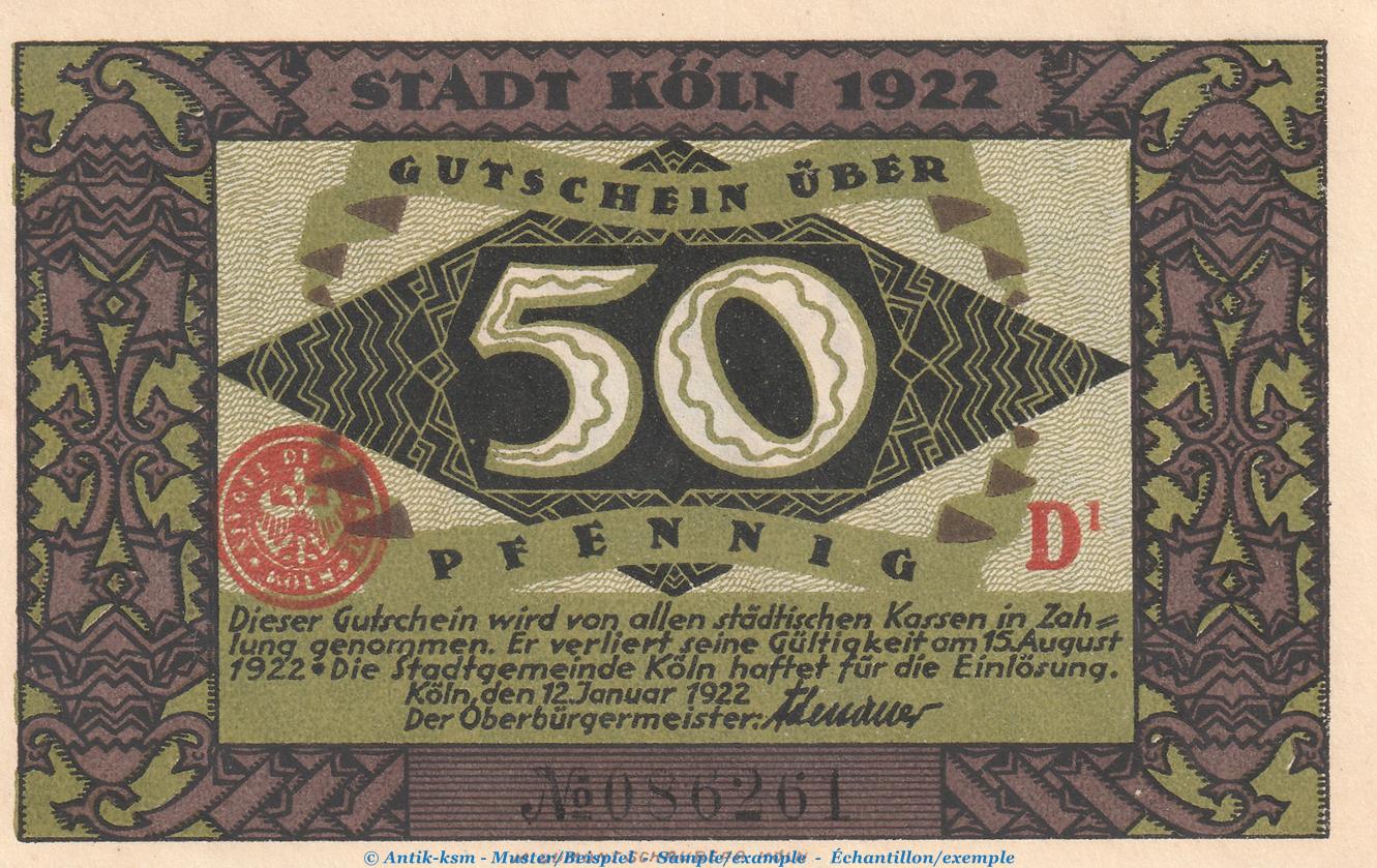 Gutschein / Banknote der Stadt Köln , Seriennotgeld