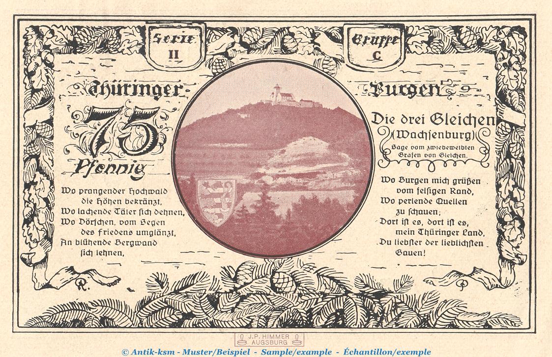 Das Set besteht aus 1 x : 75 Pfennig Schein C , Thüringer Burgenserie