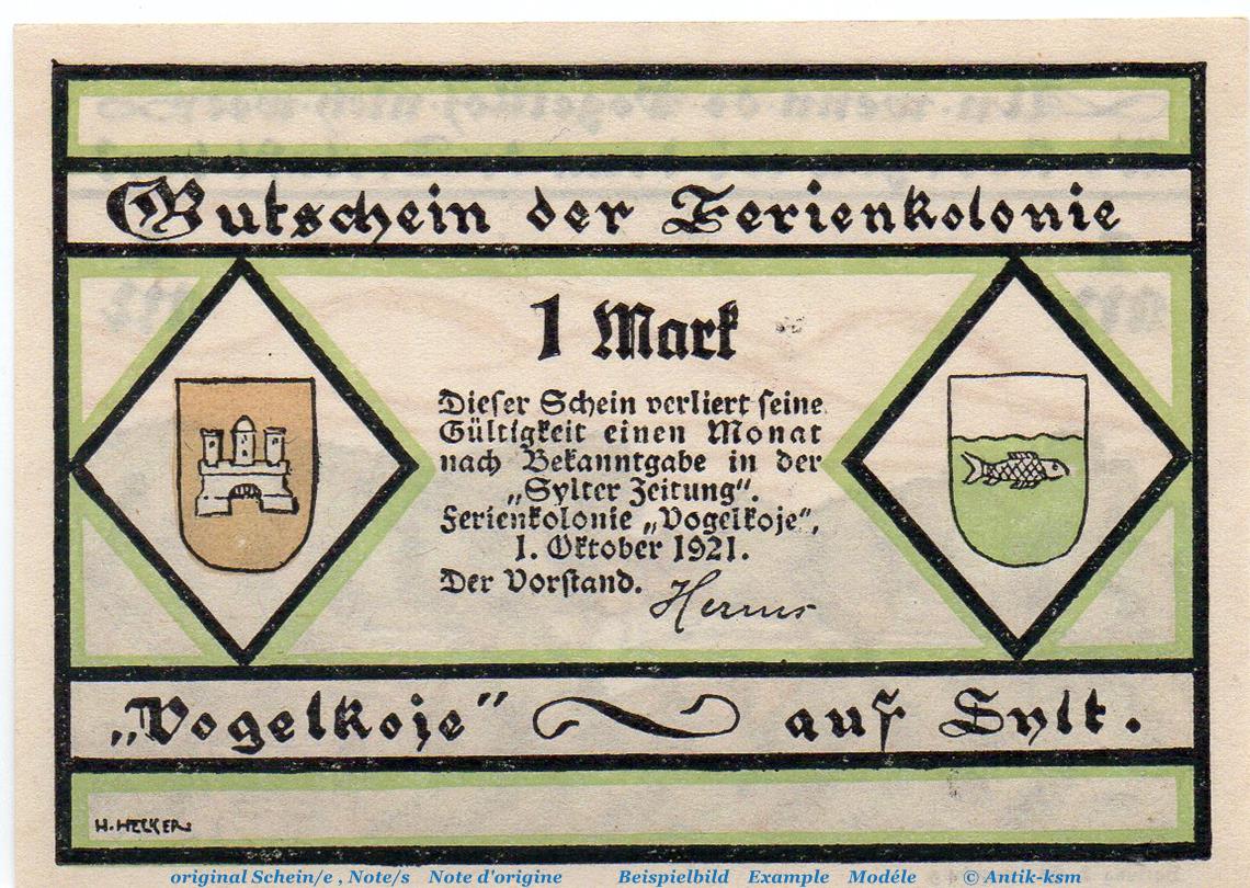 Serien Notgeld der Ferienkolonie Vogelkoje , Kampen a. Sylt