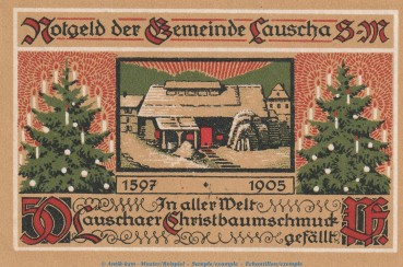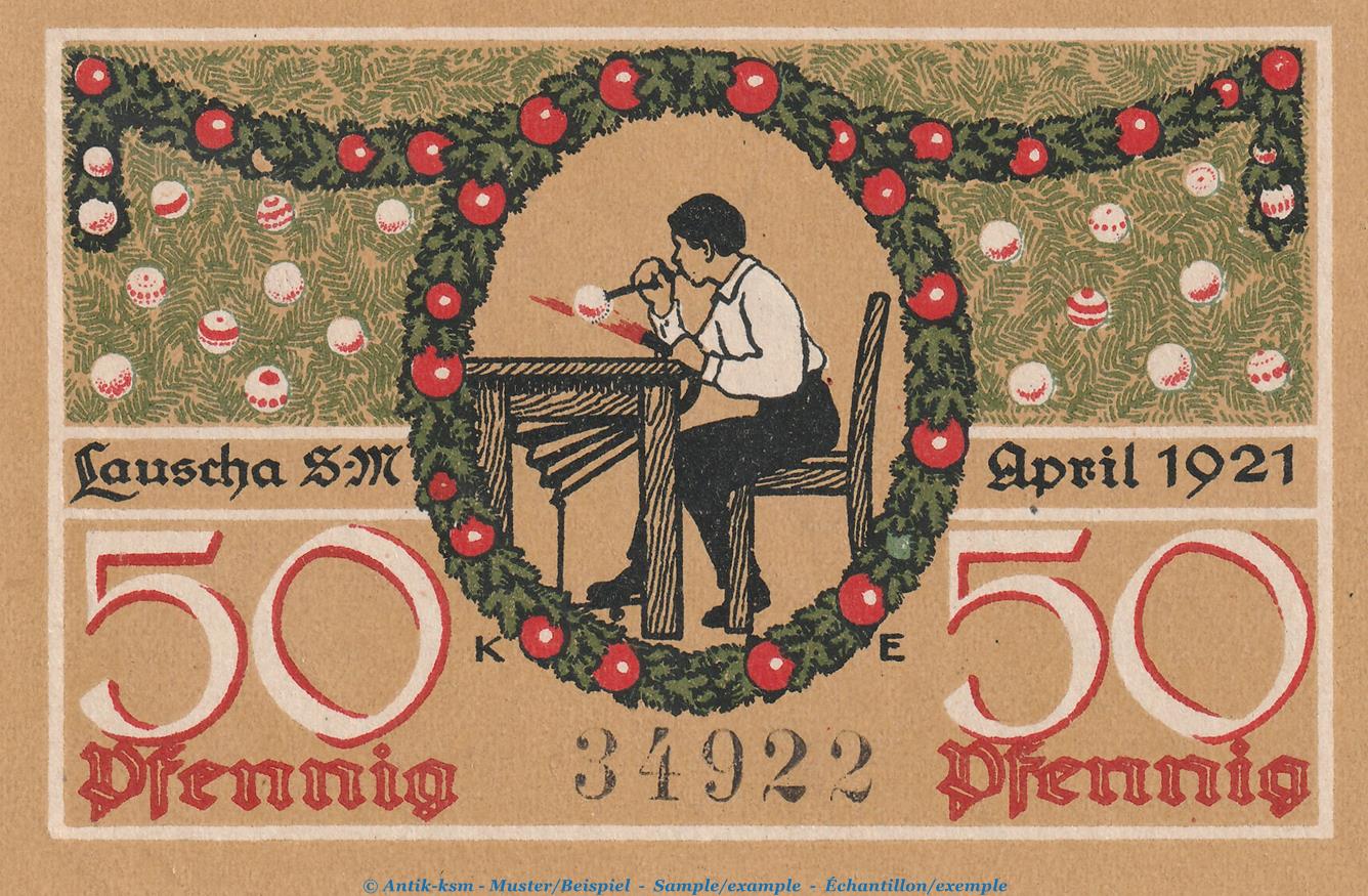 Notgeld Gemeinde Lauscha 777.1 , 50 Pfennig Schein in kfr. von 1921 , Thüringen Seriennotgeld