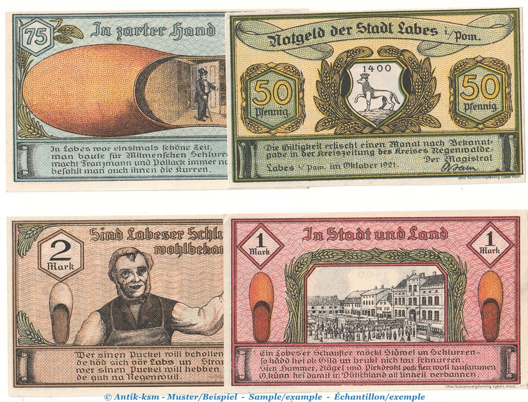 Gutscheine / Banknoten der Stadt Labes - Lobez , Seriennotgeld