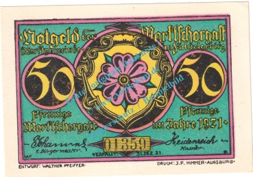 Notgeld : war seinerzeit ein Geld- / Kleingeldersatz . Die gesetzlichen Zahlungsmittel waren knapp, daher wurde das