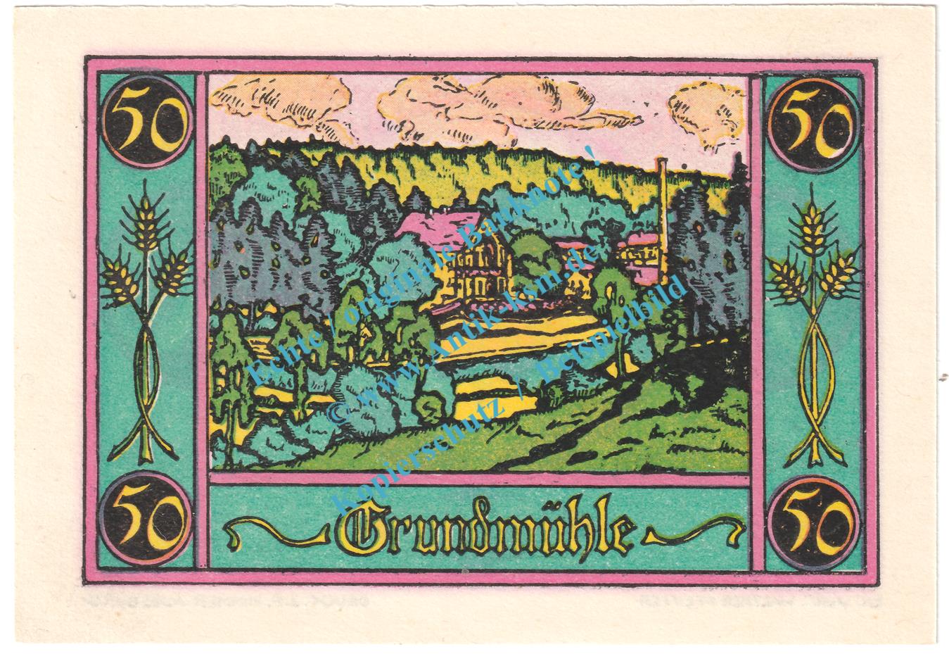 Das Notgeld Set besteht aus 1 x : 50 Pfennig Schein Nr.2 , Grundmühle