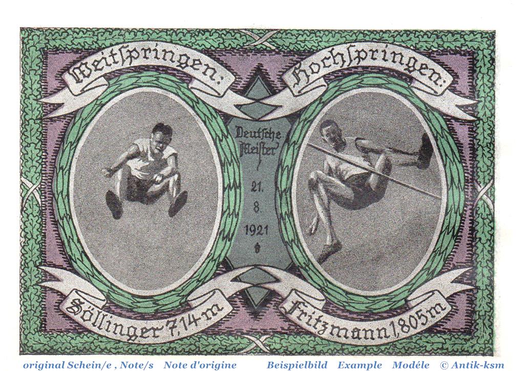 Der Notgeldsatz besteht aus : 50 Pfennig Schein Nr 2 , Weitsprung
