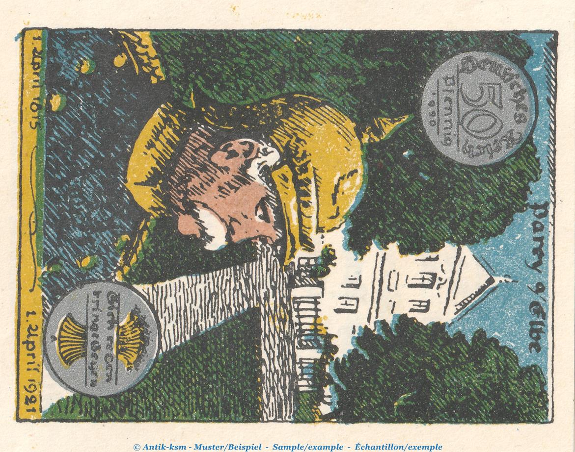 Notgeld Parey a. d. Elbe 1047.2 , 50 Pfennig Schein in kfr. von 1921 , Niedersachsen Seriennotgeld