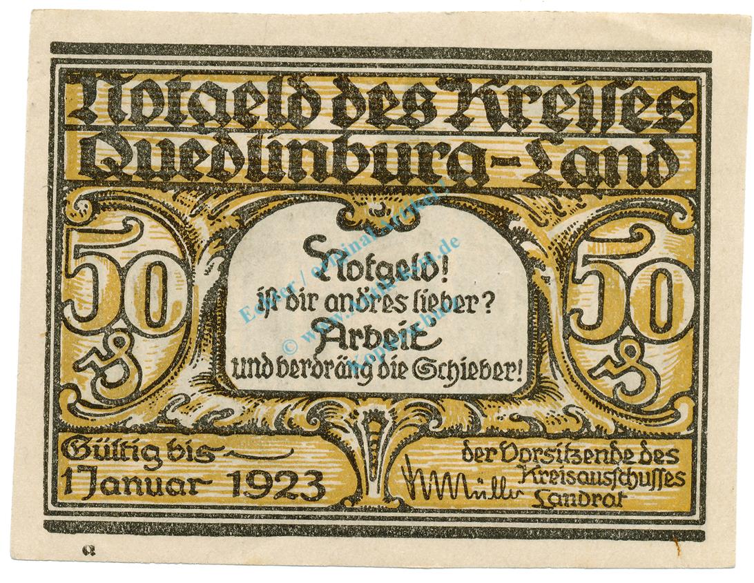 Quedlinburg , Notgeld 50 Pfennig Schein -G- unc-kfr. M-G.1089.1.a , SA o.D. Seriennotgeld -5835-
