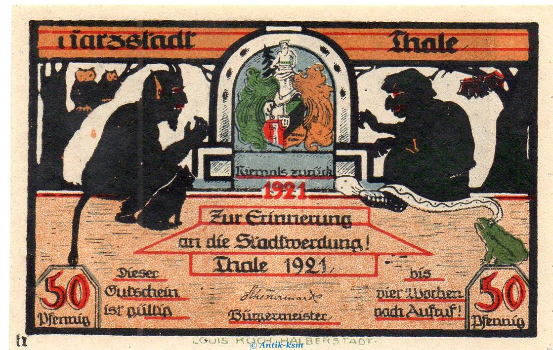 Banknote , Notgeld der Stadt Thale , Seriennotgeld , Ohne Rotdruck