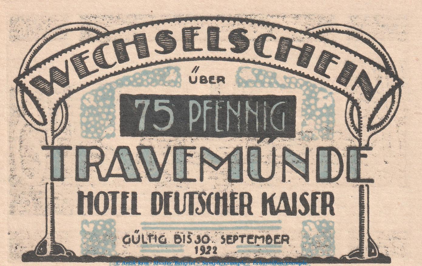 Gutscheine / Banknote Hotel deutscher Kaiser Travemünde , Seriennotgeld