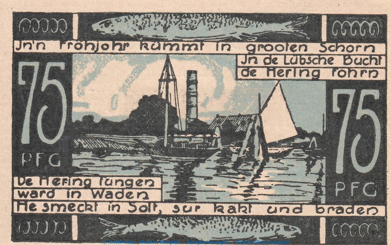 Das Set besteht aus 1 x : 75 Pfennig Schein , Drfa. mit "Lübeck"
