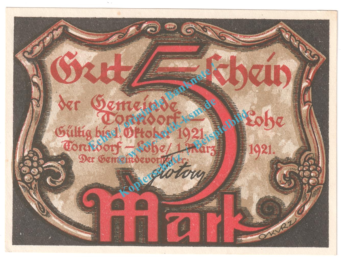 Gutschein / Banknote der Gemeinde Tonndorf - Lohe , Seriennotgeld