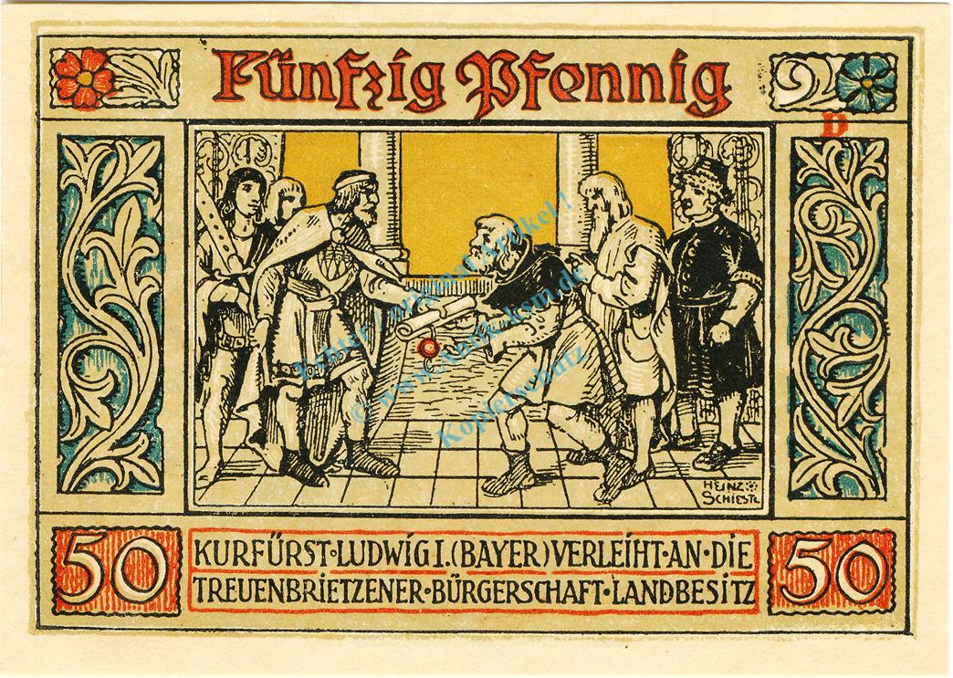 Treuenbrietzen , Notgeld 50 Pfennig -ohne Kennummer- unc-kfr. M-G 1339.1.M , Brandenburg 1921 Seriennotgeld