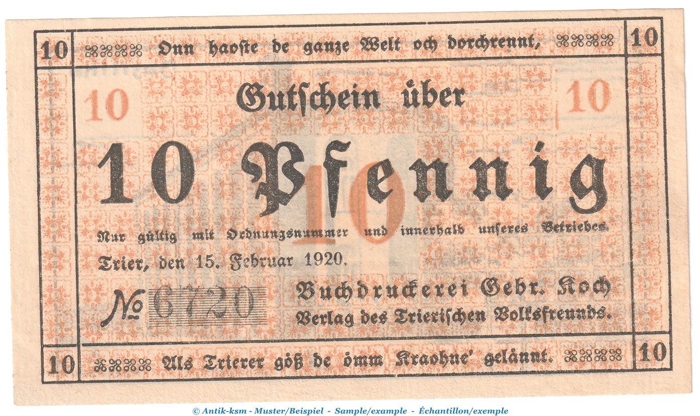 Gutschein / Banknote Buchdruckerei Gebr. Koch Trier , Seriennotgeld