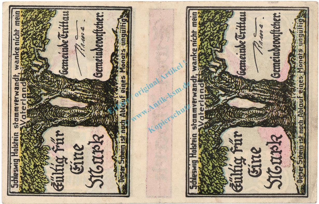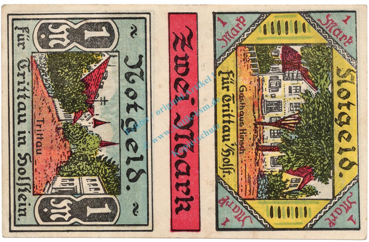 Trittau , Notgeld 2 Mark Doppelschein aunc-Lgbr. M-G 1347.4 , Schleswig Holstein o.D. Seriennotgeld
