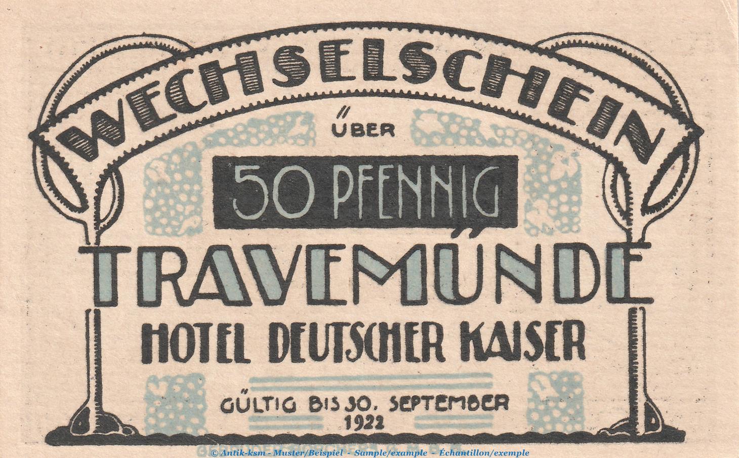 Gutscheine / Banknote Hotel deutscher Kaiser Travemünde , Seriennotgeld