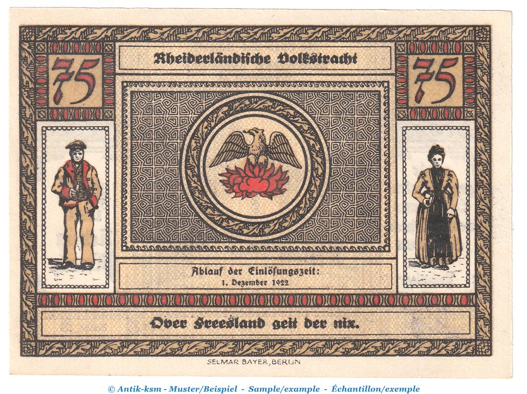 Das Set besteht aus 1 x : 75 Pfennig Schein , ausgefüllt