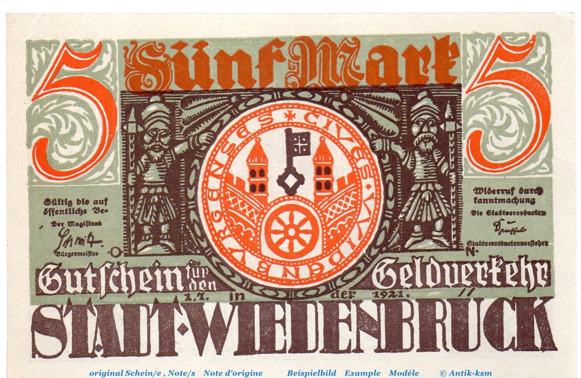 Notgeld der Stadt Wiedenbrück , Seriennotgeld , mit Druckfirma