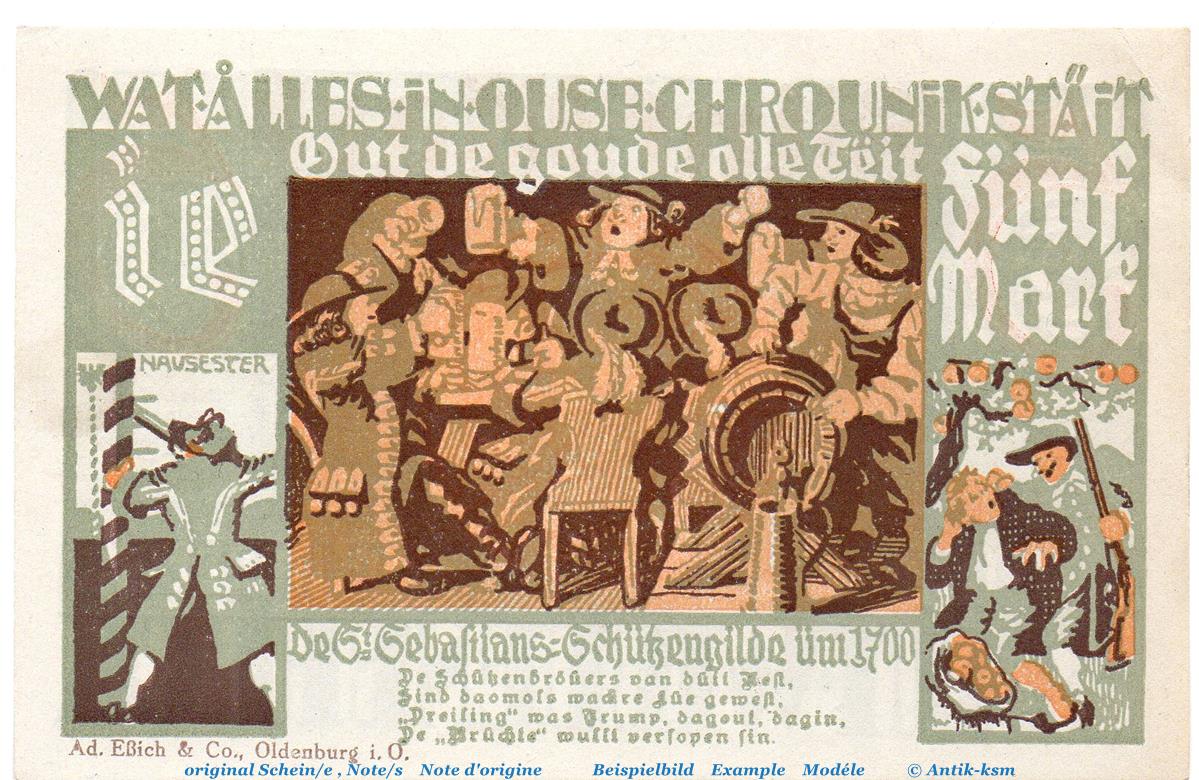 Der Notgeldsatz besteht aus : 5 Mark Schein , IE