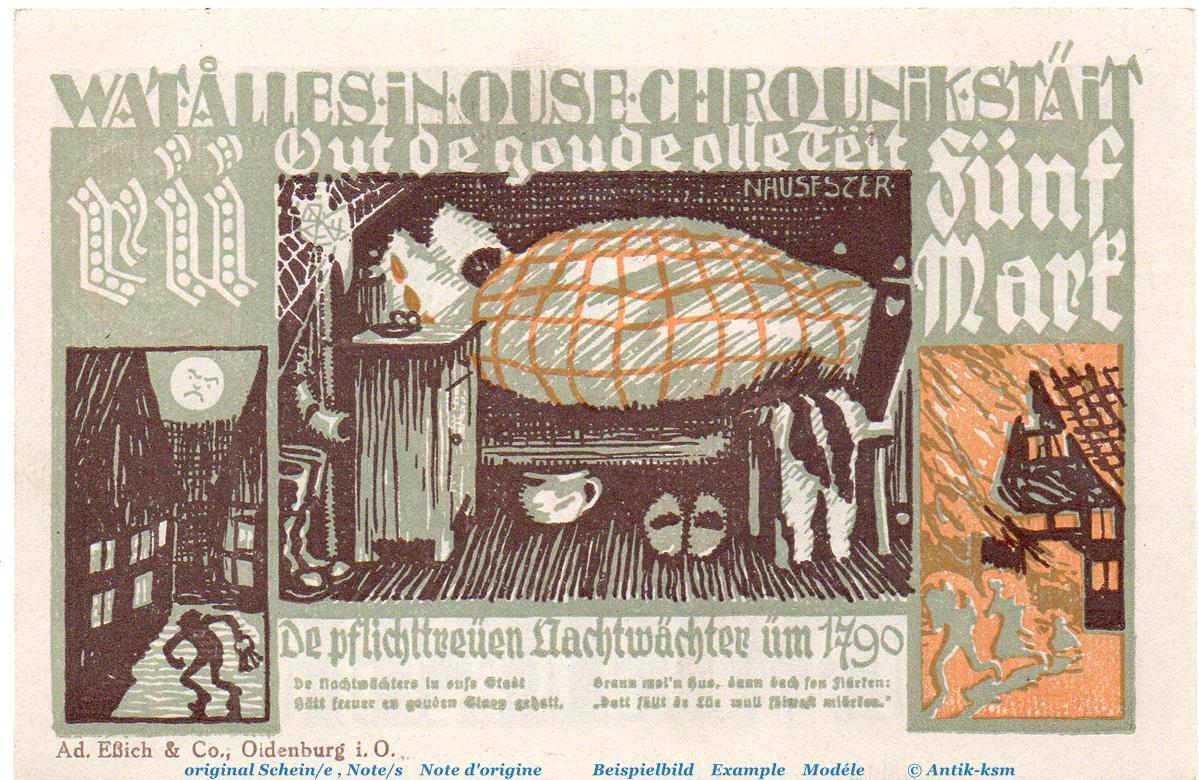 Der Notgeldsatz besteht aus : 5 Mark Schein , RÜ