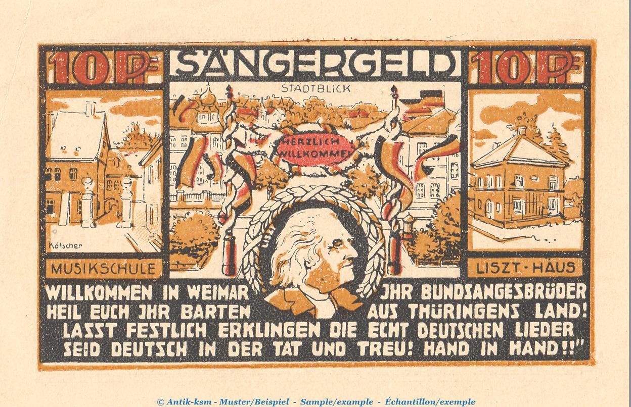 Notgeld Sängerfest Weimar 1399.1 , 10 Pfennig Schein in kfr. von 1921 , Thüringen Seriennotgeld