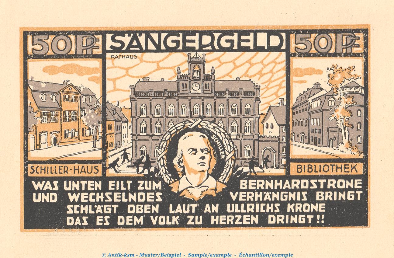 Notgeld Sängerfest Weimar 1399.1 , 50 Pfennig Schein in kfr. von 1921 , Thüringen Seriennotgeld