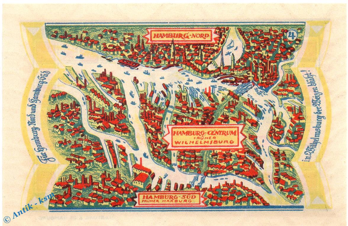 Wilhelmsburg , Notgeld 50 Pfennig Schein Nr.4 , M-G 1429.1 Hamburg 1921 Seriennotgeld