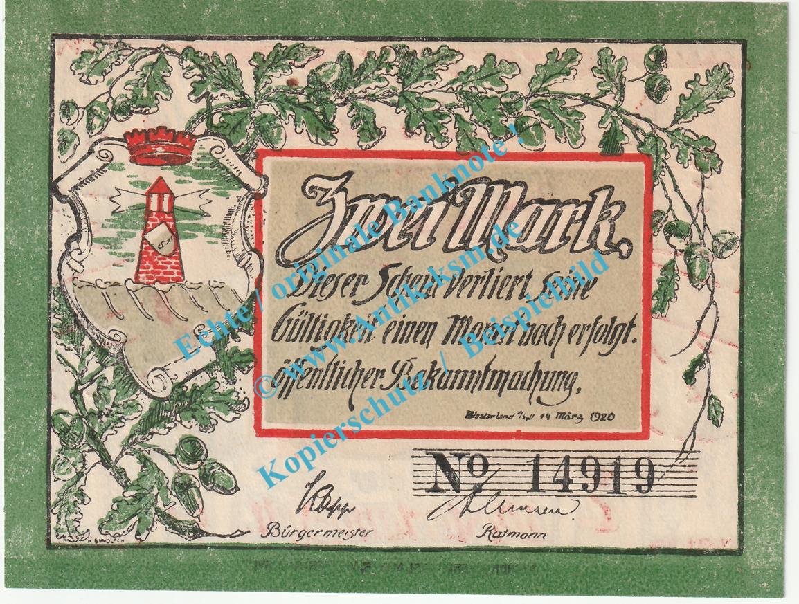 Das Notgeld Set besteht aus 1 x : 2 Mark Schein