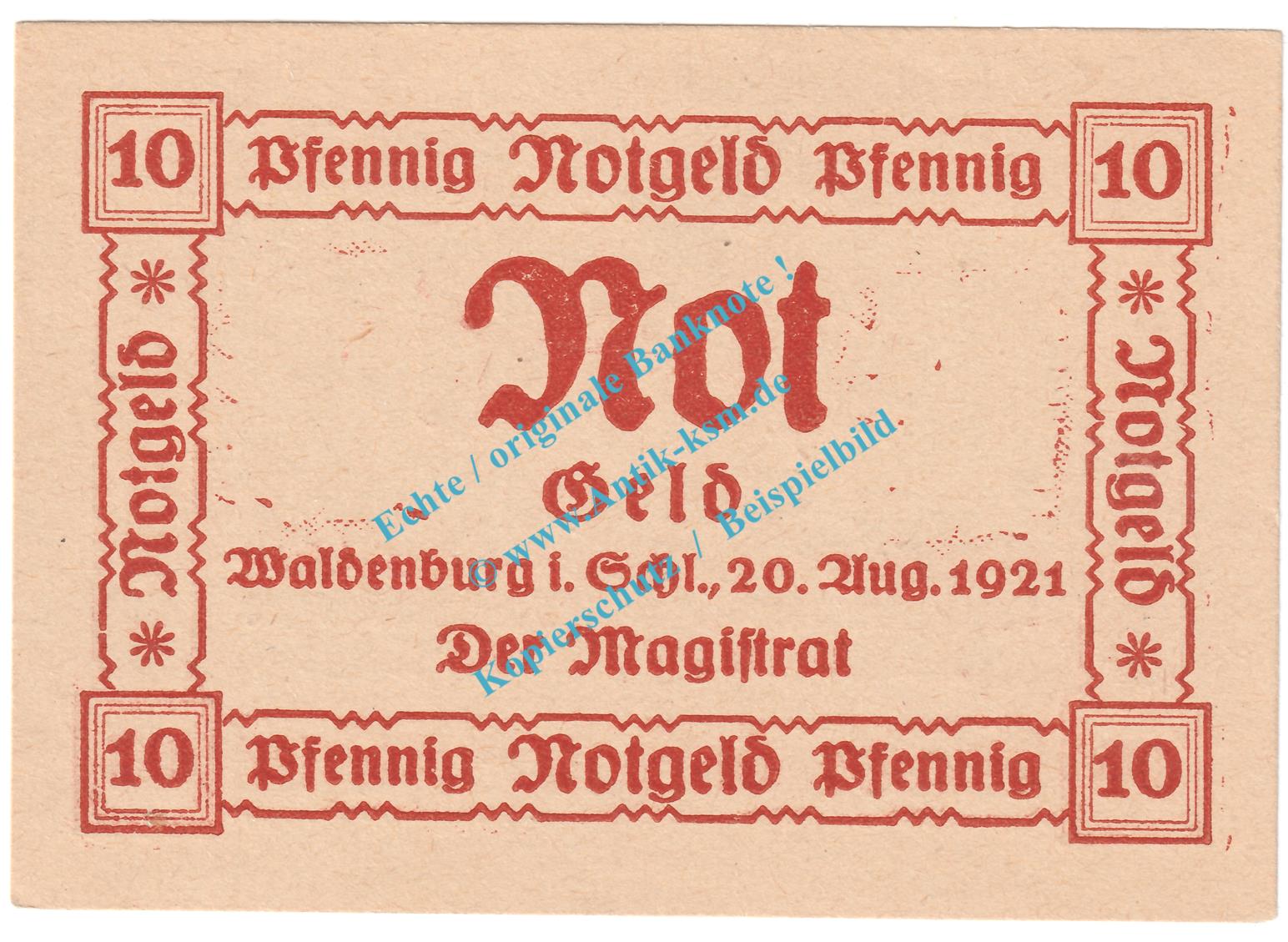 Waldenburg , Notgeld 10 Pfennig Schein -sämisch- in kfr. M-G 1371.16.c , Schlesien 1921 Seriennotgeld
