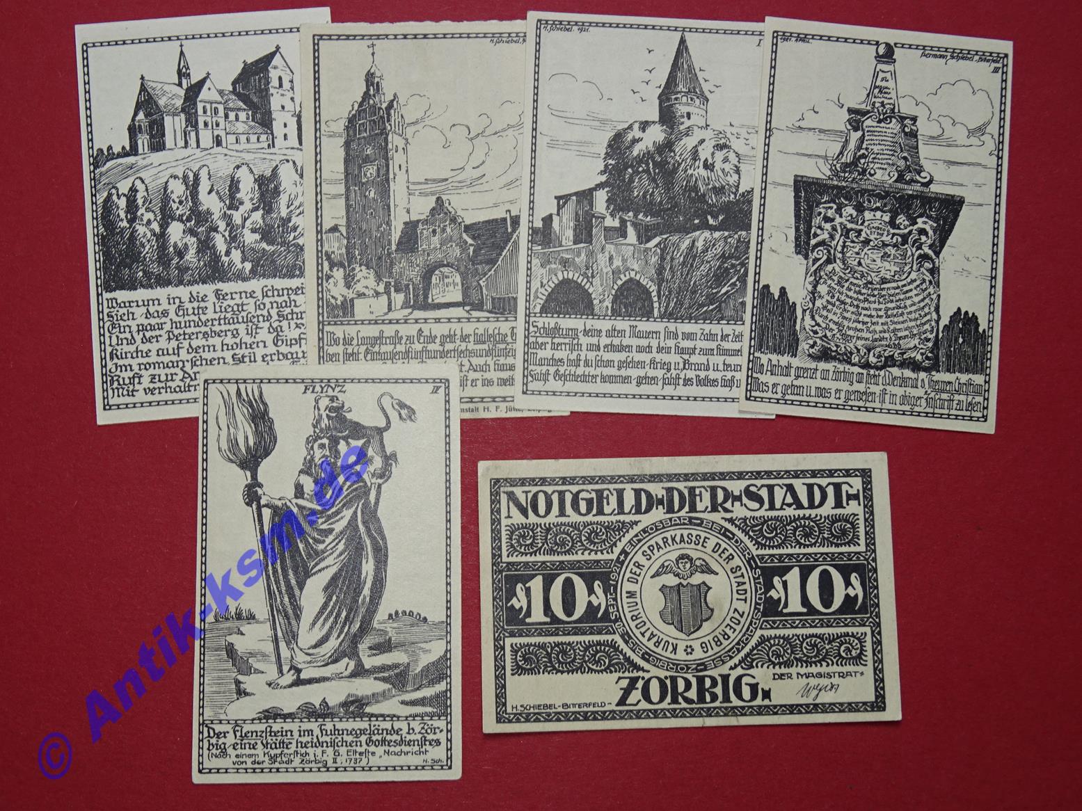 Notgeld Zörbig , Stadt , Sachsen Anhalt , vollständiger Satz mit 6 Scheinen , Seriennotgeld , 1475.2 , von 1921
