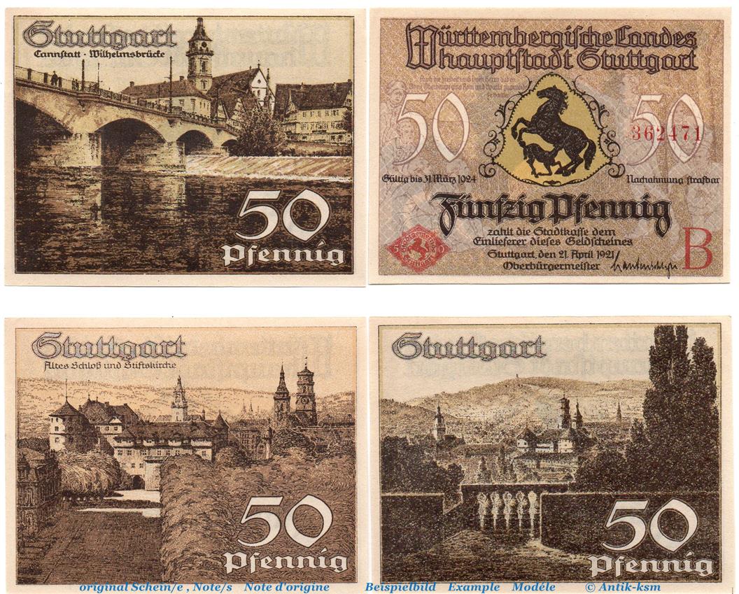 Notgeld Stadt Stuttgart 1289.1 , Set mit 4 Scheinen in kfr. von 1921 , Baden Württemberg Seriennotgeld