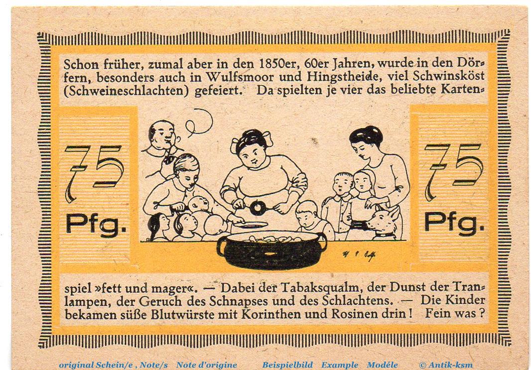 Notgeld Ehrk und Hornfelder Stellau 1264.1.b , 75 Pfennig Nr 1 , in kfr. von 1921 , Schleswig Holstein Seriennotgeld