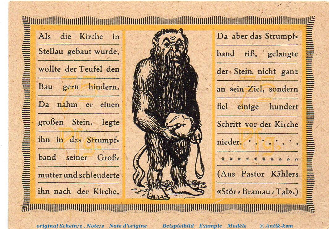 Notgeld Ehrk und Hornfelder Stellau 1264.1.b , 75 Pfennig Nr 2 , in kfr. von 1921 , Schleswig Holstein Seriennotgeld