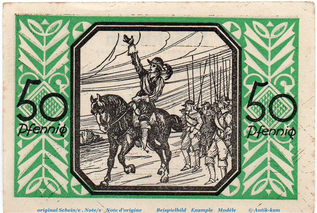 Der Notgeldsatz besteht aus : 50 Pfennig Schein Nr 4 , Heerführer