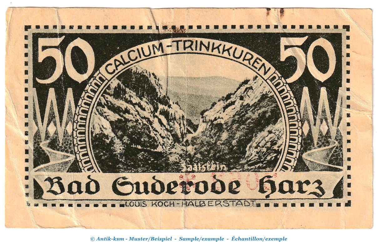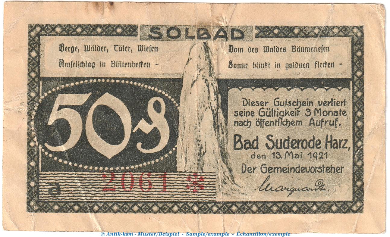 Notgeld Gemeinde Suderode 1292.1.b , 50 Pfennig -A statt C- in gbr. von 1921 , Sachsen Anhalt Seriennotgeld