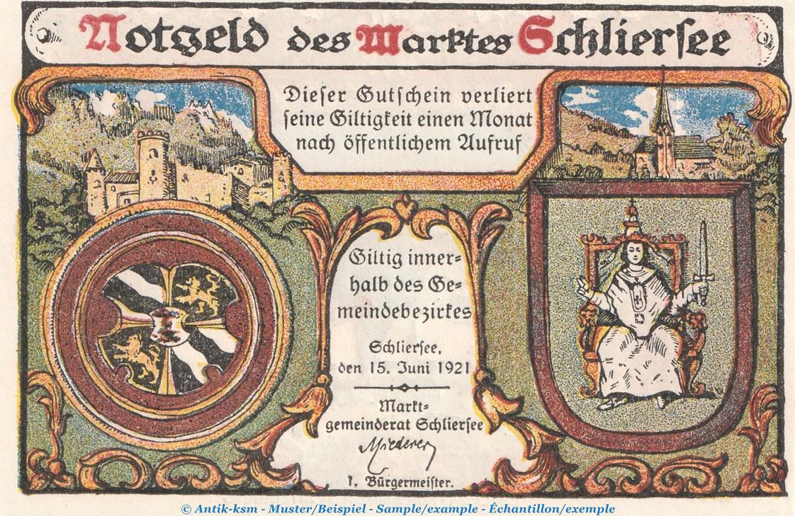 Gutschein / Banknote der Marktgemeinde Schliersee , Seriennotgeld
