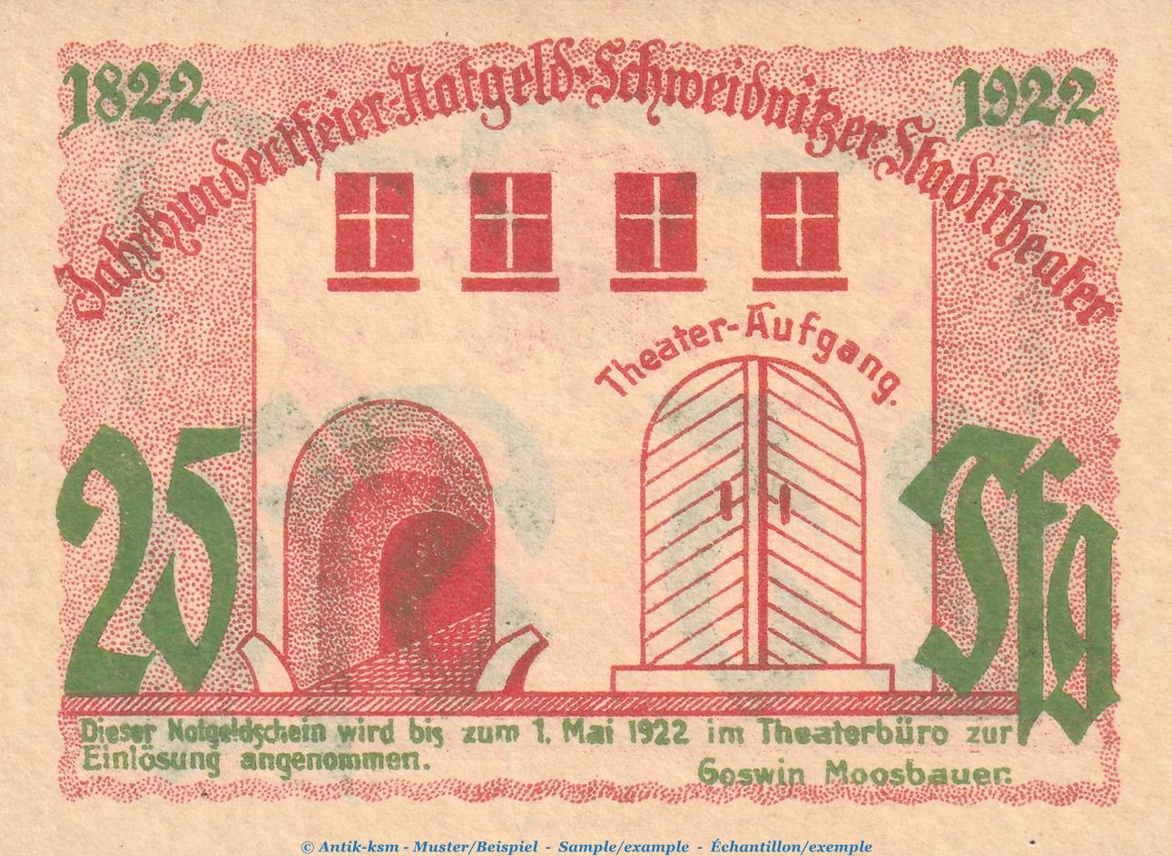Gutschein / Banknote Stadttheater Schweidnitz - Swidnica , Seriennotgeld