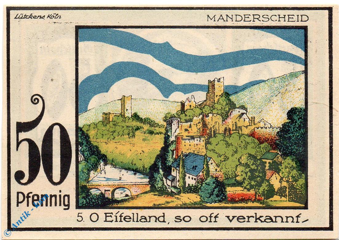 Der Notgeldsatz besteht aus : 50 Pfennig Schein Nr 5 , glattes Papier