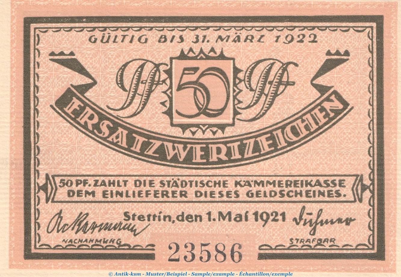 Gutschein / Banknote der Stadt Stettin - Szczecin , Seriennotgeld