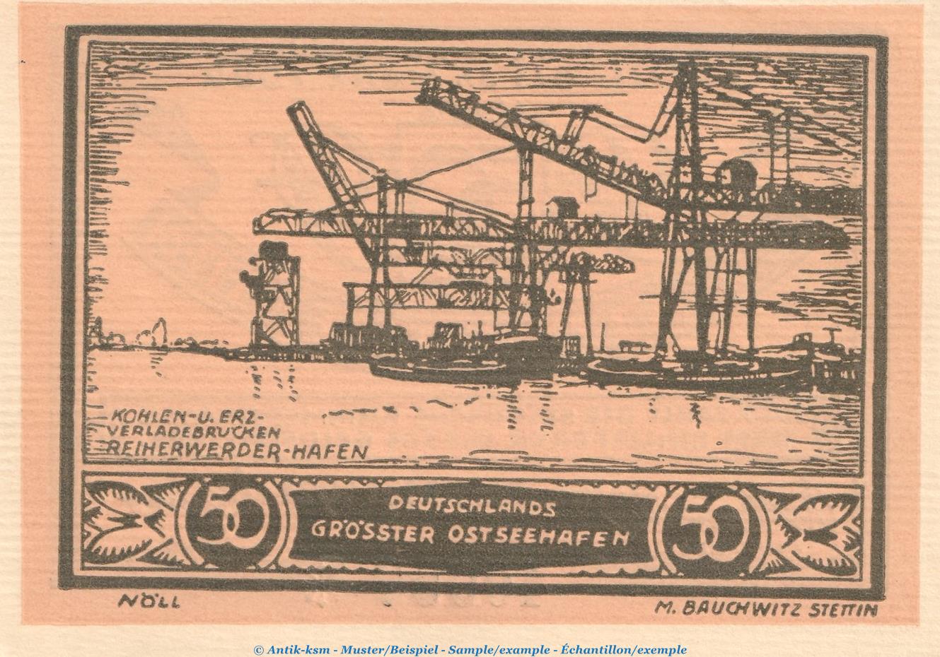 Das Set besteht aus 1 x : 50 Pfennig Schein Nr 2 , Reiherwerder Hafen