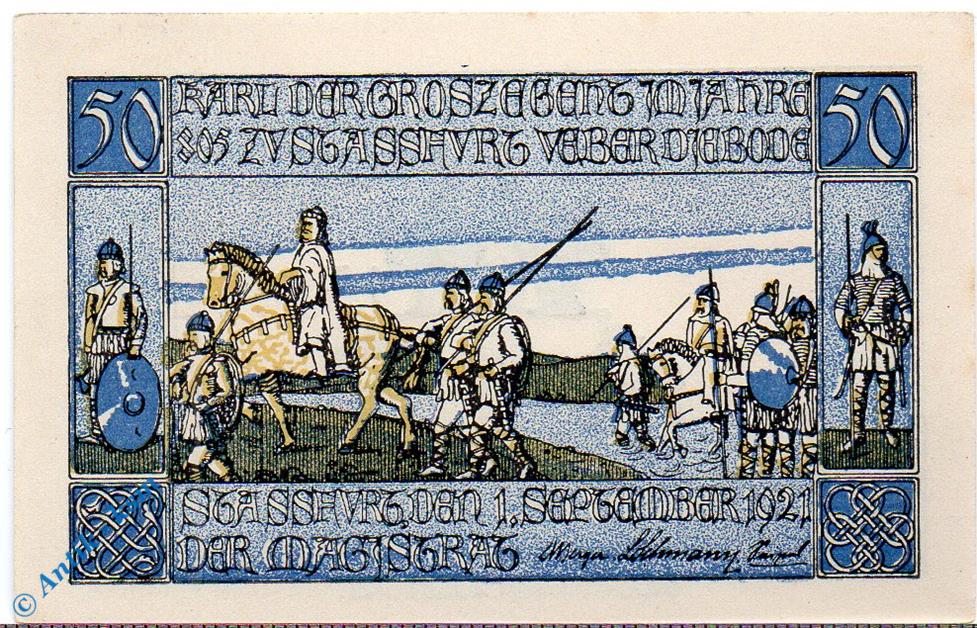 Der Notgeldsatz besteht aus : 50 Pfennig Schein Nr 3 , Karl der Große