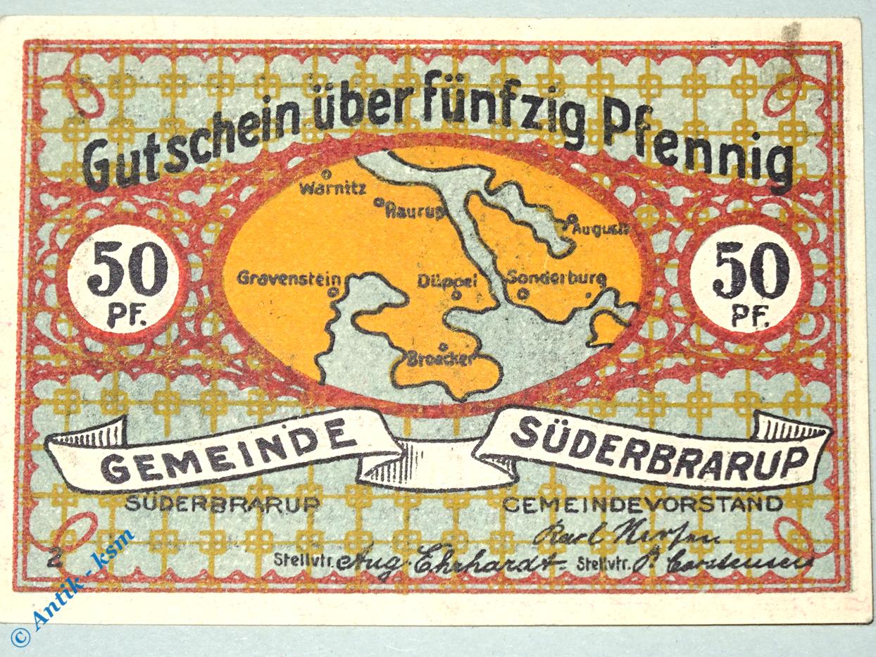 Serien Notgeld der Gemeinde Süderbrarup , mit 2 x Stellvtr. vor den Unterschriften