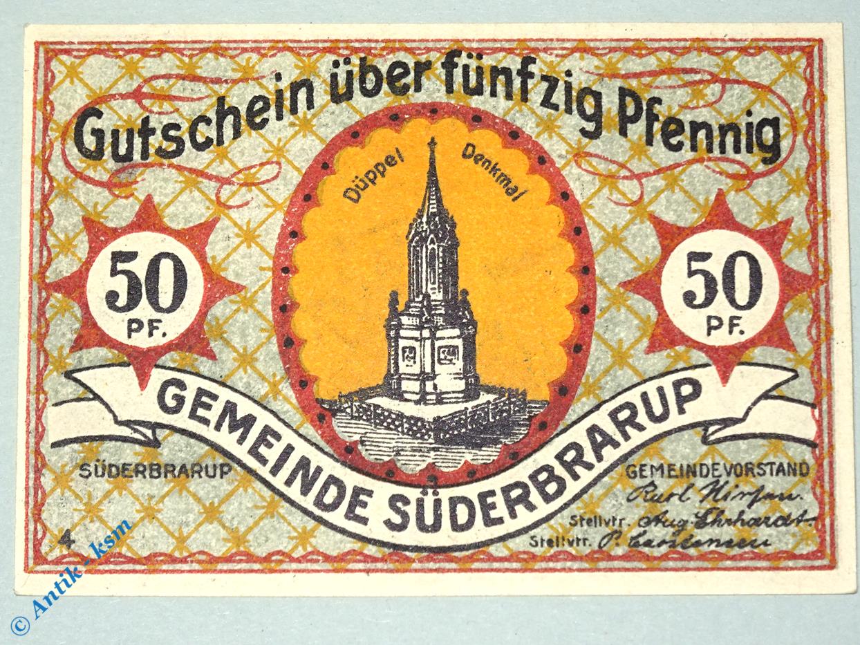 Serien Notgeld der Gemeinde Süderbrarup , mit 2 x Stellvtr. vor den Unterschriften