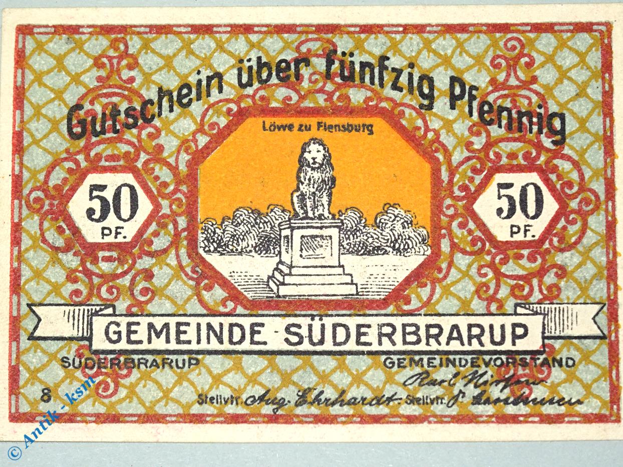 Serien Notgeld der Gemeinde Süderbrarup , mit 2 x Stellvtr. vor den Unterschriften