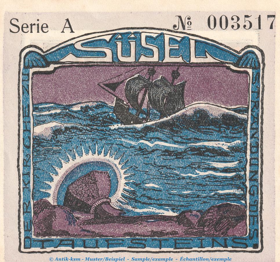Notgeld Gemeinde Süsel 1300.1 , 100 Pfennig Schein in kfr. von 1921 , Schleswig Holstein Seriennotgeld