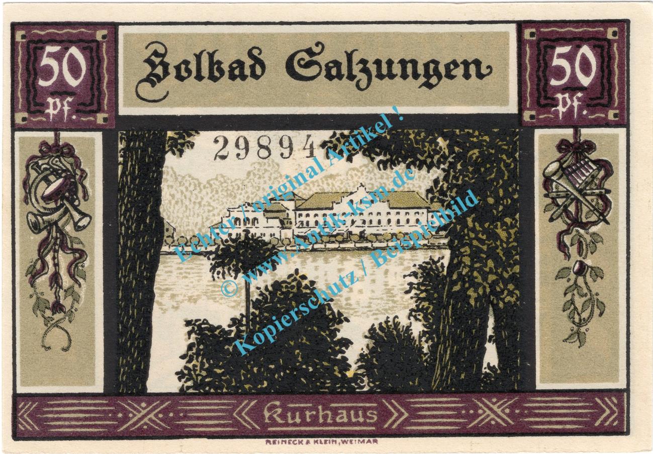 Salzungen , Notgeld 50 Pfennig Schein in kfr. M-G 1160.1.a , Thüringen 1921 Seriennotgeld