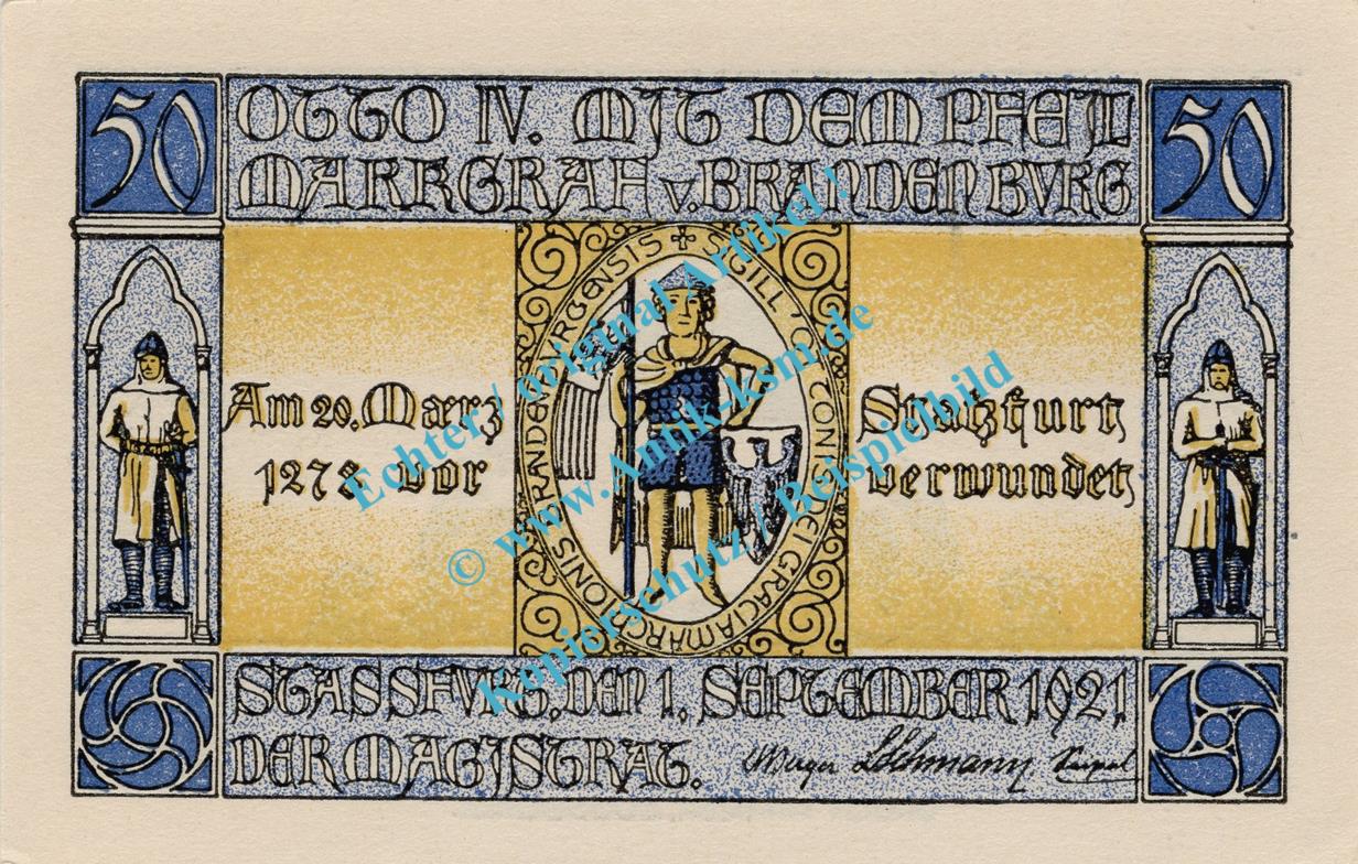 Stassfurt , Notgeld 50 Pfennig Schein Nr.2 in kfr. M-G 1256.3.a , Sachsen Anhalt 1921 Seriennotgeld