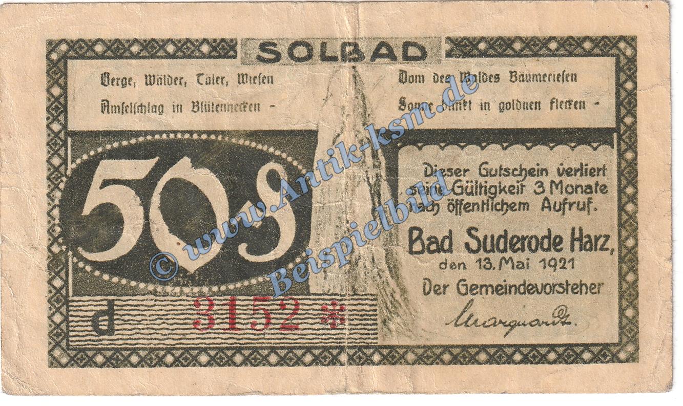 Das Notgeld Set besteht aus 1 x : 50 Pfennig Schein , Bad Suderode mit "d"
