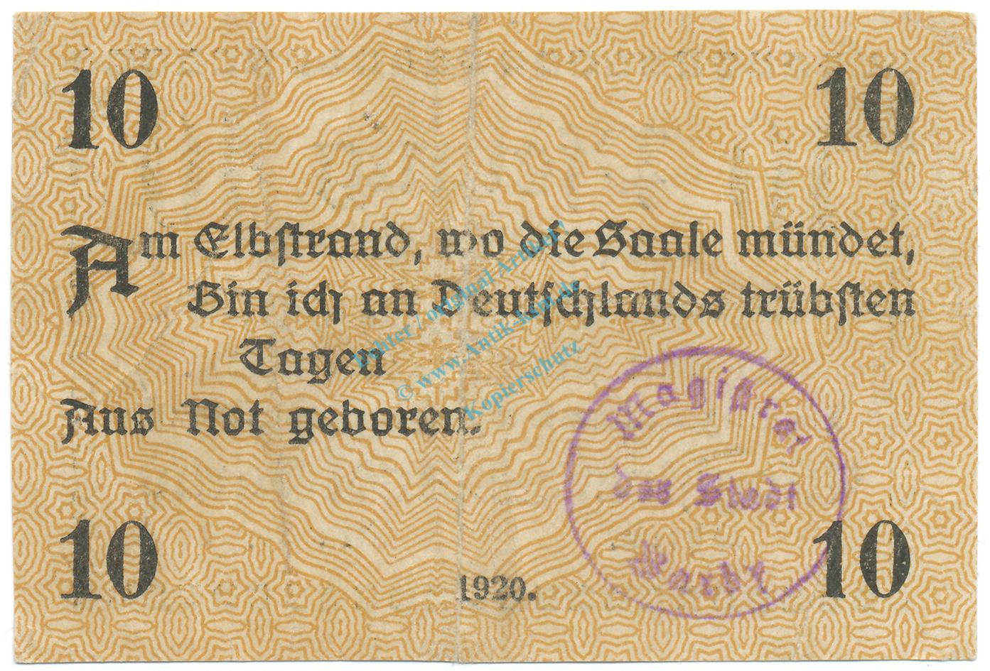 Barby , Notgeld 10 Pfennig Schein gbr. Ti.0320.10.06 S 1920 Verkehrsausgabe -4252-