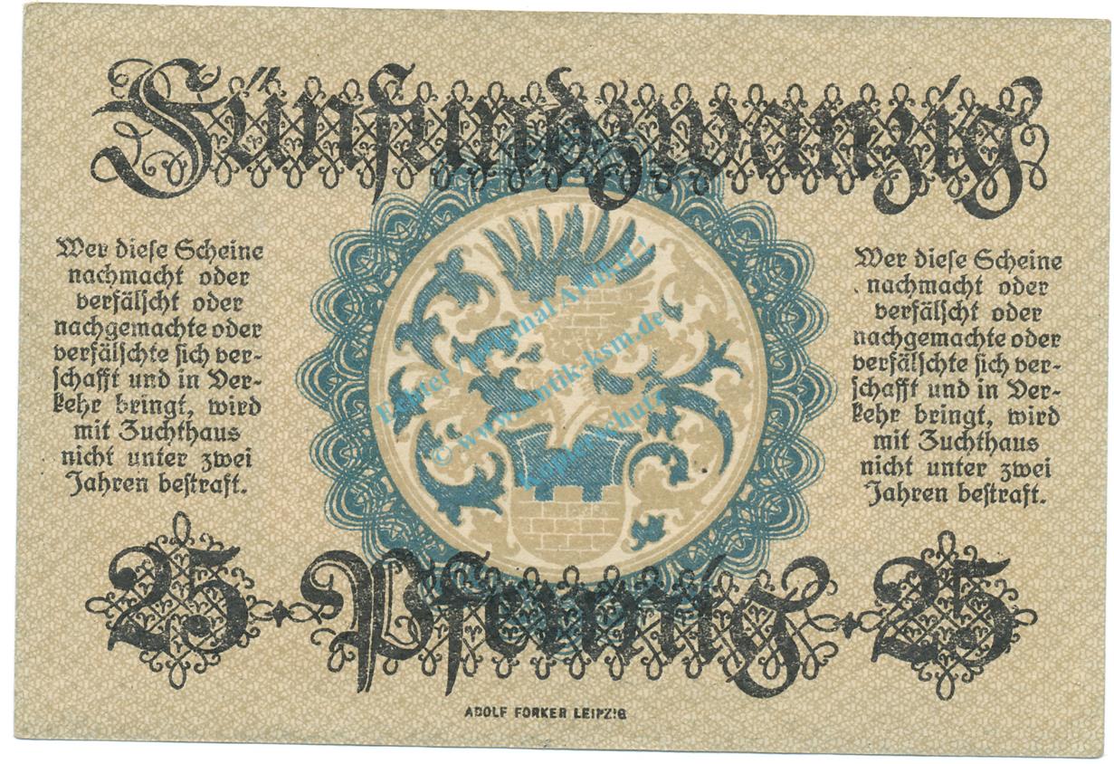 Bautzen , Notgeld 25 Pfennig Schein unc-kfr. Ti.0360.20.15 , S 1918 Verkehrsausgabe -4224-