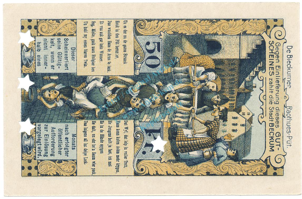 Beckum , Notgeld 50 Pfennig --MUSTER-- unc-kfr. Ti.0370.10... Westfalen 1918 Verkehrsausgabe