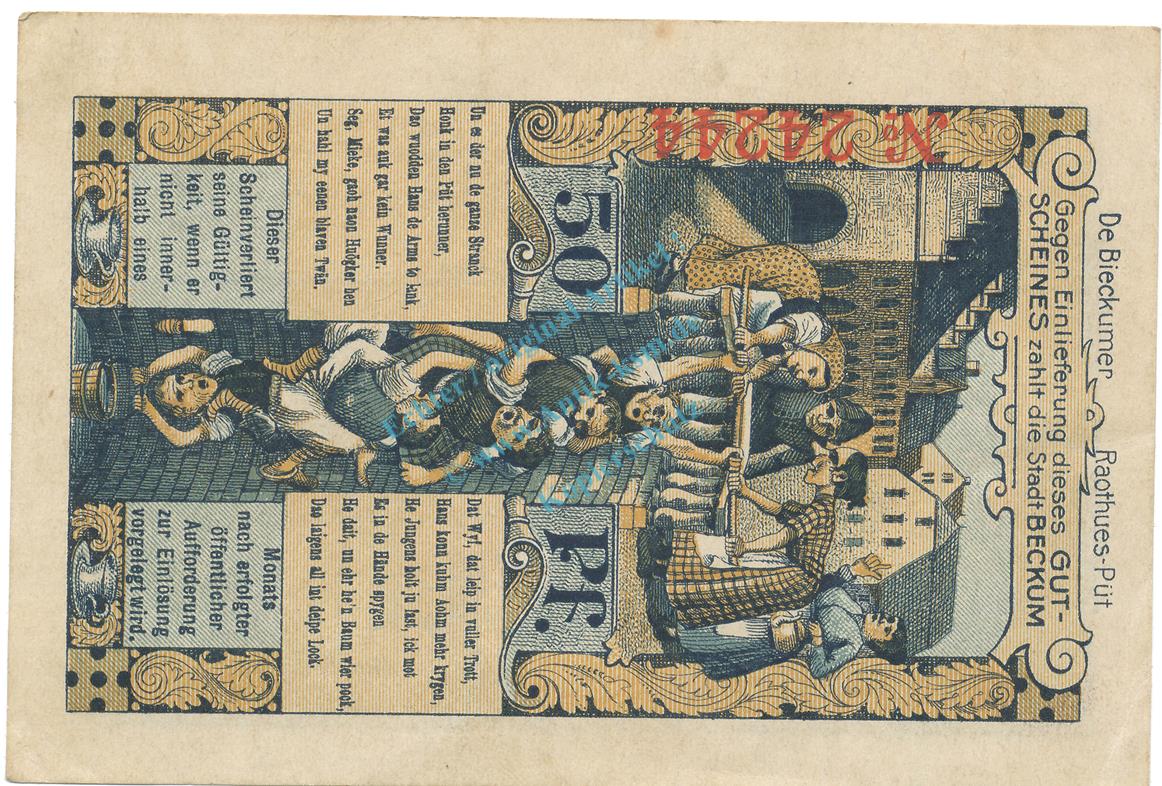 Beckum , Notgeld 50 Pfennig Schein unc-kfr. Ti.0370.10.01.c NRW 1918 Verkehrsausgabe -4247-